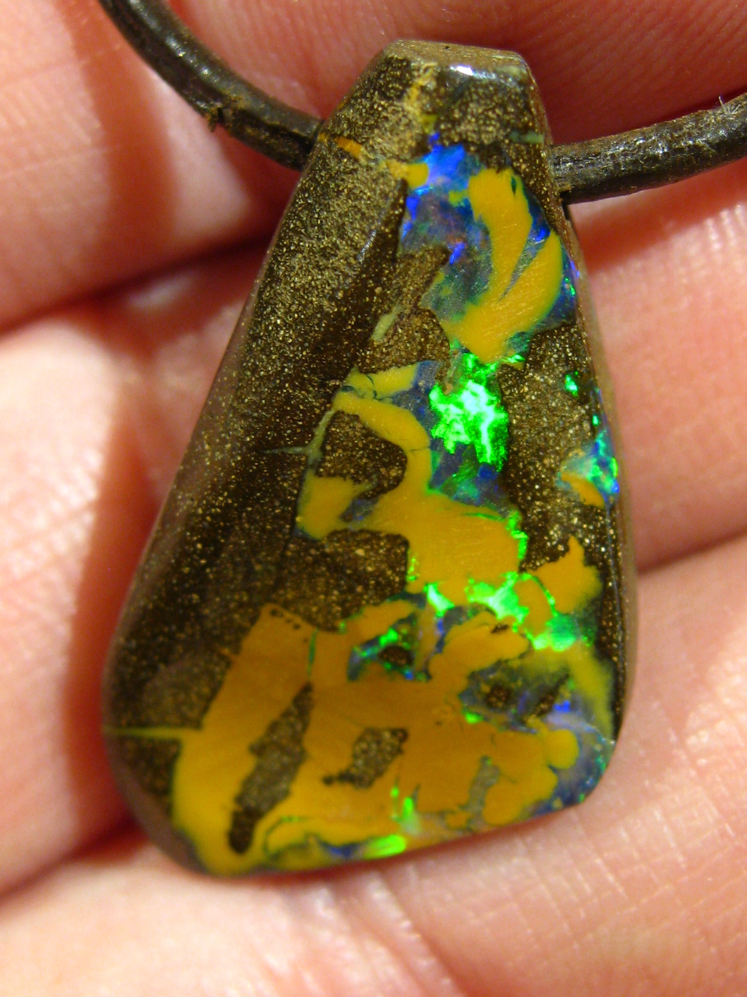 GEM Boulder Matrix Yowah NUSS Nut Opal AnhÀnger Traumhaftes Muster und Feuer